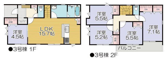 洋室 4.5帖 1室 LDK 15.7帖 1室 洋室 5.5帖 2室 洋室 5.2帖 1室 洋室 7.1帖 1室 |